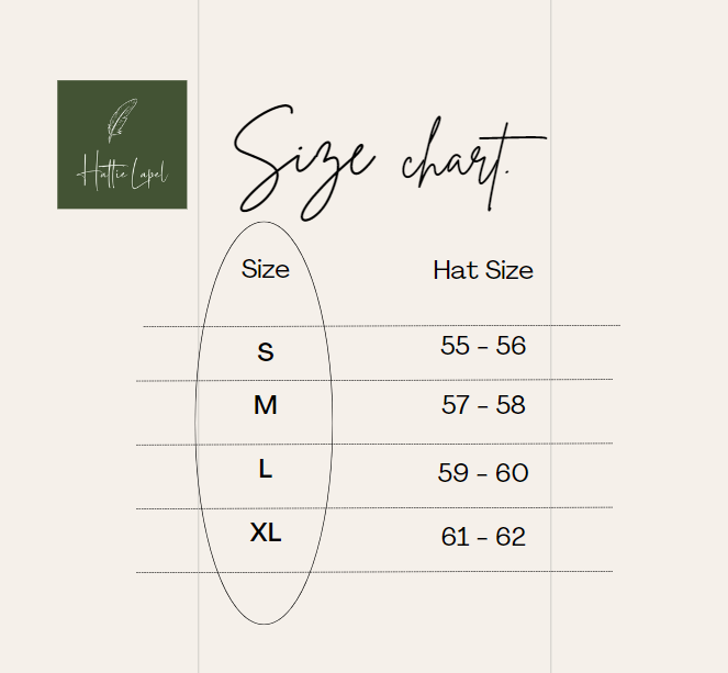 Can't find your hat size? Measure in cms where your hatband is placed, take 2cms off, this will be approximately your hat size.